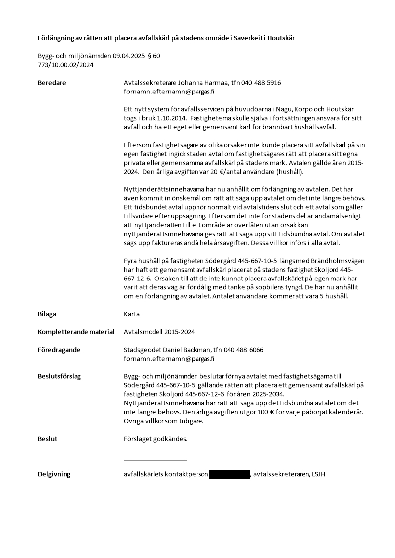 Avtal om nyttjanderätt avfallskärl (2015-2024)